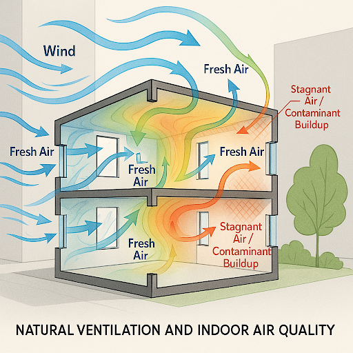 We provide advanced CFD analysis to evaluate and optimize natural ventilation systems and indoor air quality for healthier, energy-efficient buildings. Our simulations model airflow patterns driven by wind and thermal buoyancy, assessing how building design, window placement, and surrounding context influence fresh air circulation and pollutant dispersion. By identifying areas prone to stagnant air or contaminant buildup, we help design natural ventilation strategies that effectively improve indoor air exchange without relying solely on mechanical systems.