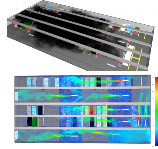 We provide specialized Computational Fluid Dynamics (CFD) analysis for ventilation and air quality optimization in enclosed spaces such as car parks and tunnels. Our simulations evaluate airflow patterns, pollutant dispersion (including vehicle emissions), smoke movement, and temperature distribution to ensure effective ventilation design that meets safety and comfort standards. This includes assessing scenarios for normal operation and emergency conditions such as fire smoke extraction.