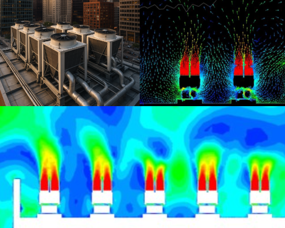 We provide advanced CFD analysis to optimize the heat dissipation and placement of cooling towers, chillers, and associated HVAC equipment. Our simulations model airflow, temperature distribution, and heat plume behavior around mechanical equipment to identify potential hotspots, recirculation zones, and interactions that could reduce system efficiency. By analyzing various layout scenarios, we help determine optimal equipment positioning to enhance cooling performance, minimize heat impact on surrounding areas, and improve overall plant operation.