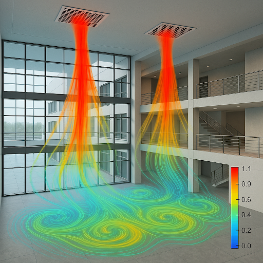 Our collaborative approach engages architects, mechanical engineers, and sustainability consultants from early design through final stages to develop ventilation solutions that enhance occupant comfort, reduce energy consumption, and meet indoor air quality standards. This integrated CFD-driven analysis supports sustainable, resilient building environments that prioritize occupant health and well-being.