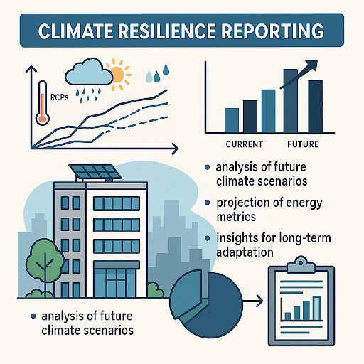 We provide Climate Resilience Reporting to help projects anticipate and adapt to future climate conditions by analyzing how buildings will perform under long-term environmental changes. Using scientifically developed future weather files based on Representative Concentration Pathways (RCPs), we simulate energy use and thermal comfort outcomes across various future climate scenarios.